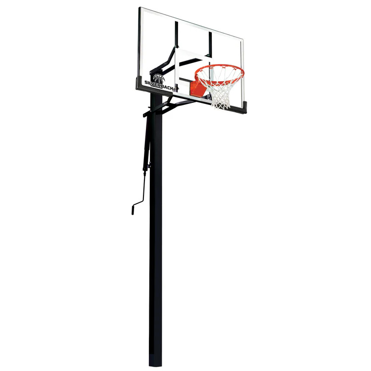 PRO-STYLE BASKETBALL GOAL — Tempered glass backboard and pro-style breakaway rim that flexes under pressure